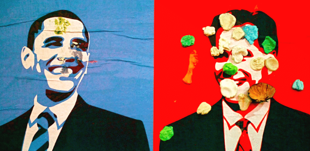 Nova-iorquinos usam chiclete para escolher entre Obama e Romney Cartaz do projeto Gum Election está disponível no site para impressãoCada eleitor tem um jeito de demonstrar seu apoio a um candidato. Há quem prefira cartazes, bótons, bandeiras. Há quem prefira as redes sociais. É fácil notar que as manifestações de amor ou repúdio costumam variar muito de um país para outro, e até de uma cidade para outra.No Egito, a população vai até a praça. No Brasil, muitos gostam dos adesivos. Em terra de jovens imigrantes e forasteiros, quem tem chiclete é rei. Pelo menos, é o que parece acontecer em Nova York, a cidade mais cosmopolita dos Estados Unidos.